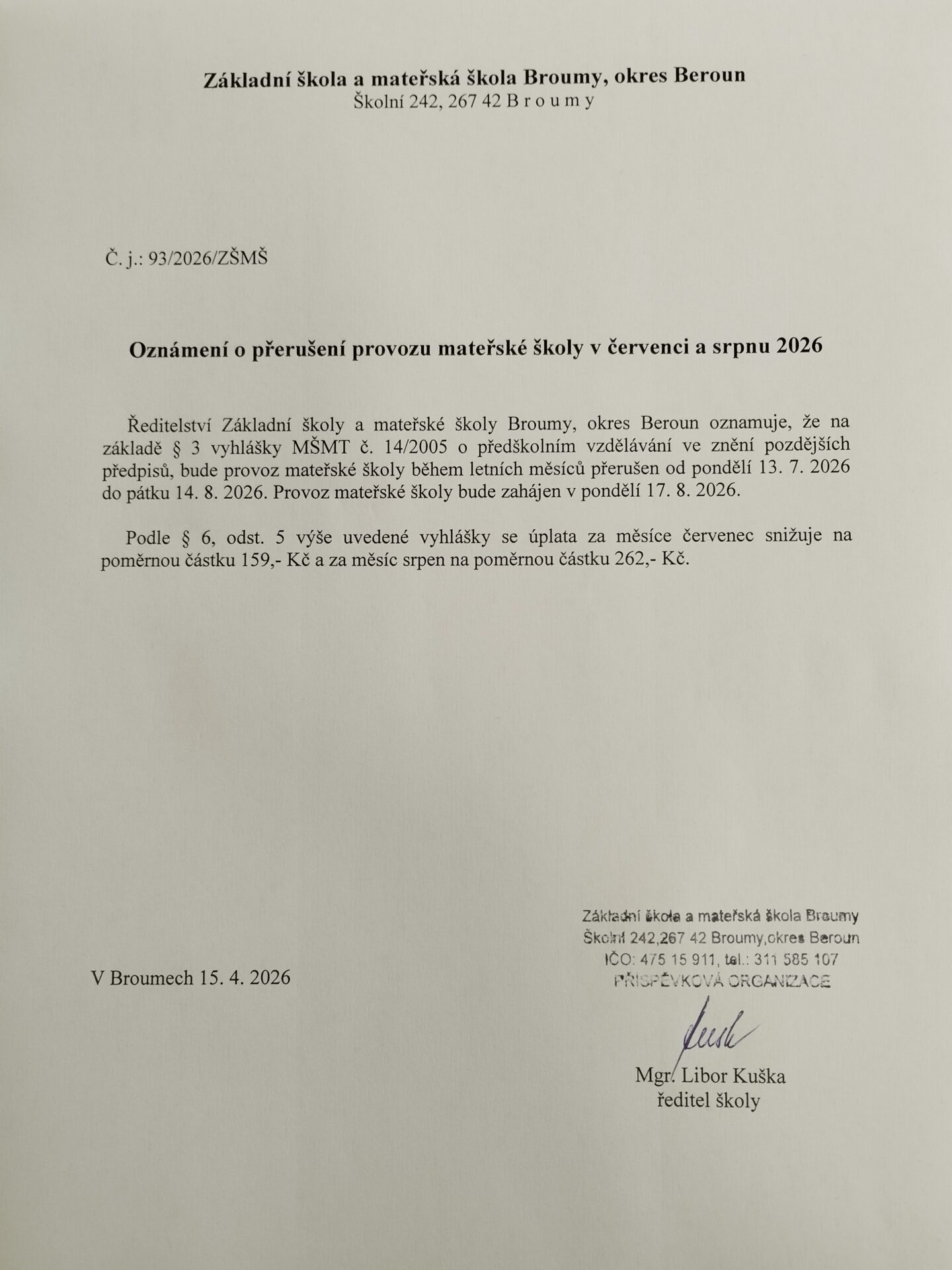 Domů » Aktuality » Provoz MŠ v červenci a srpnu 2026